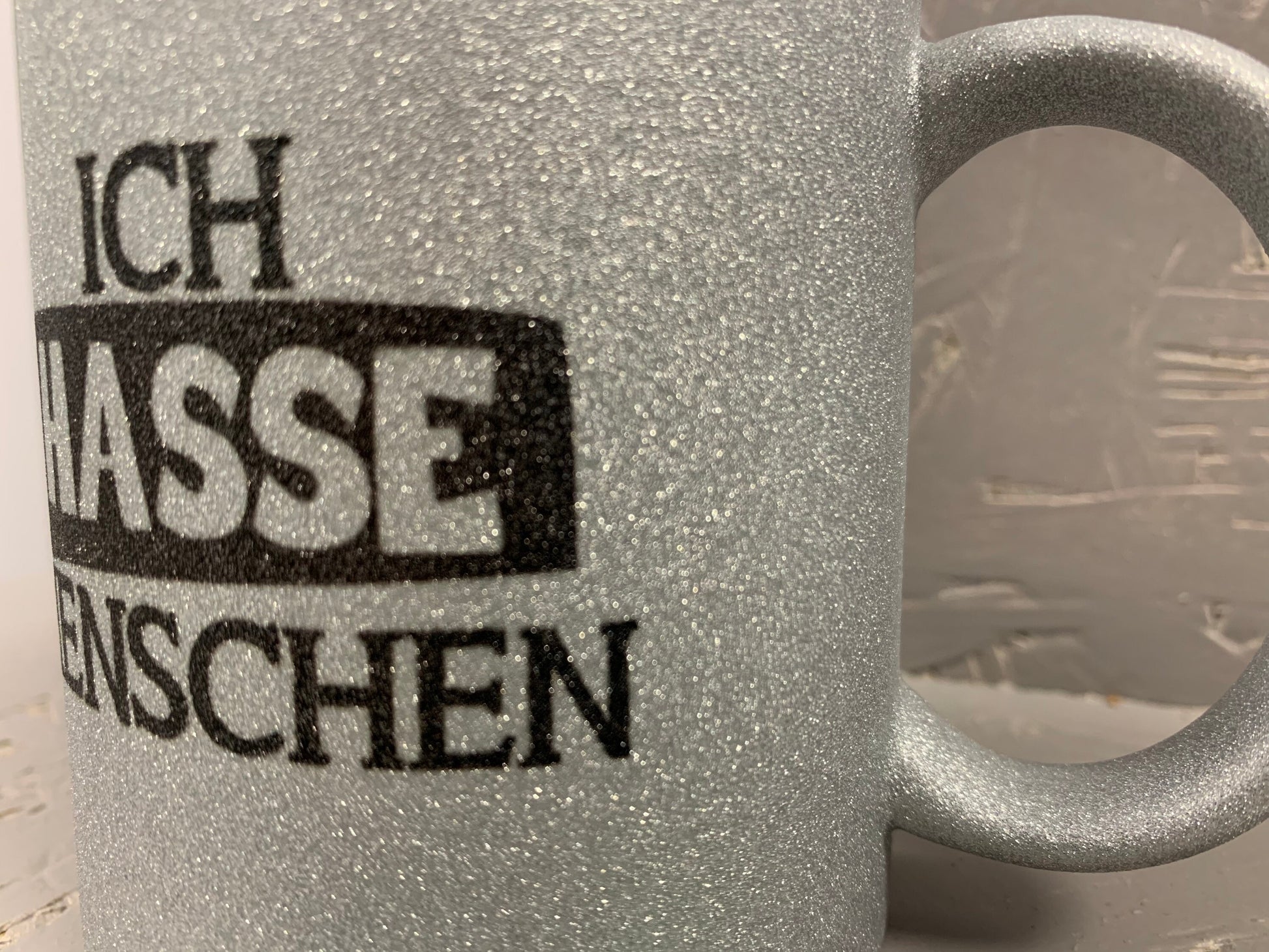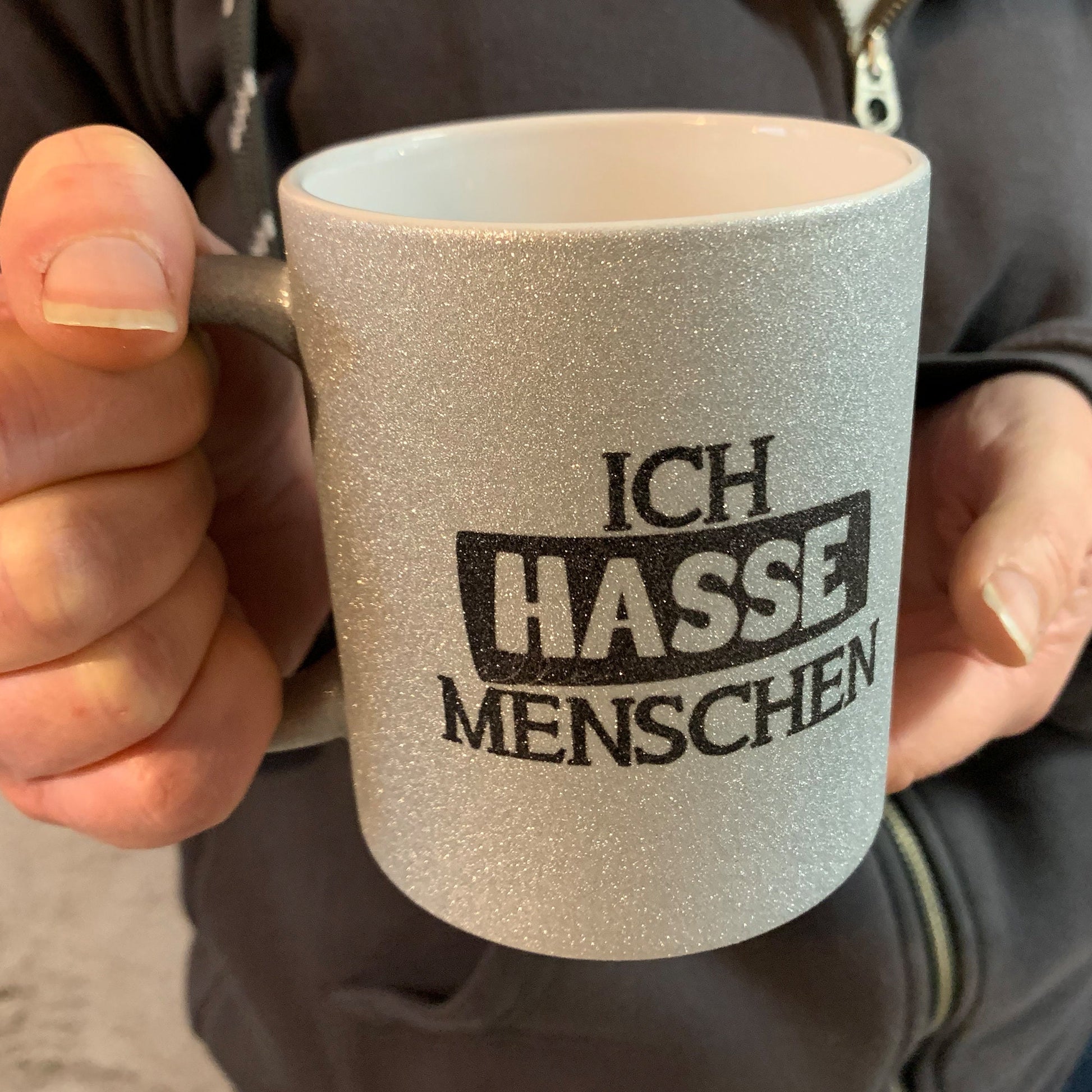 Ich hasse Menschen Glitzer Tasse in silber, Kaffeetasse, Kaffeebecher